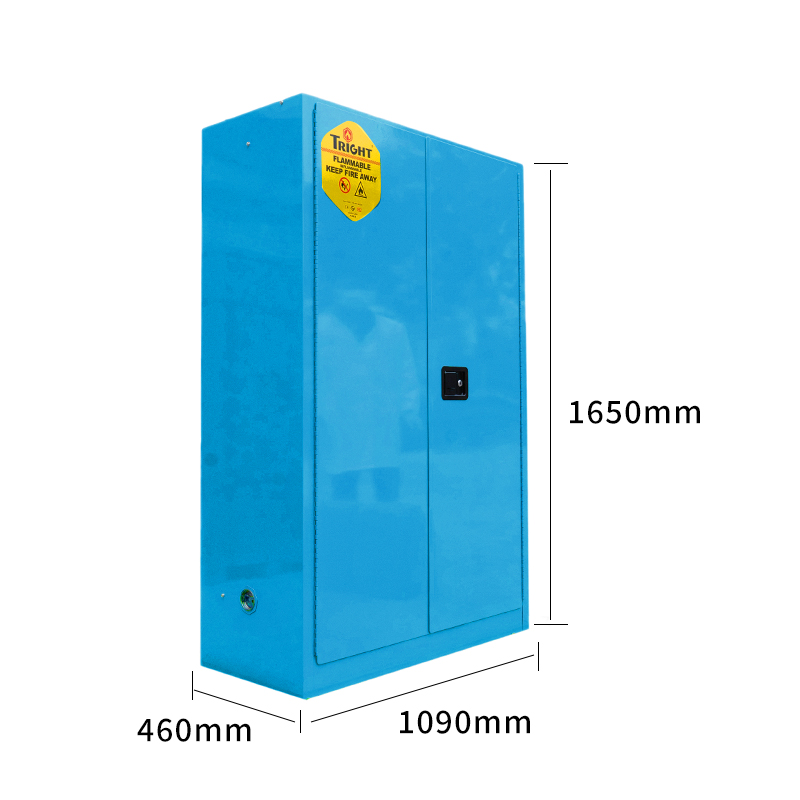 钛汭Tright ®防火安全柜(俗称防爆柜、化学品柜、防火柜、安全柜、危化品柜)由优质镀锌钢板整体折弯焊接构造而成,通过分类、分区、分颜色等实现危险化学品的安全、合规、有序管理。防火安全柜常用于生产车间、实验室、医院等场所存储易燃、可燃、有毒、腐蚀性、易制爆等危险化学品。