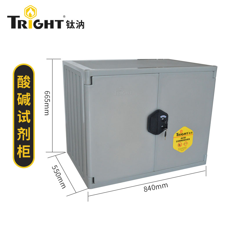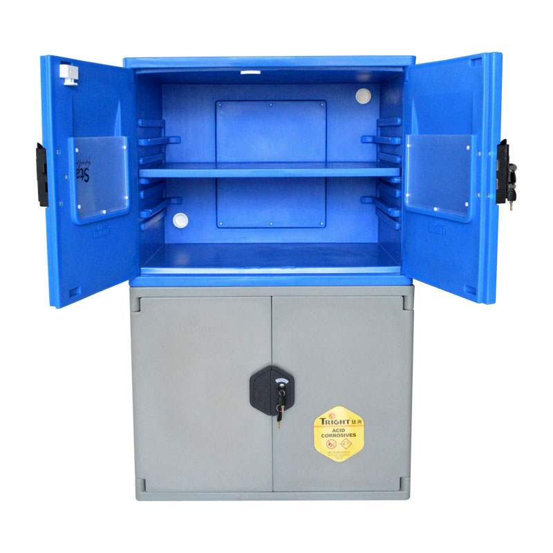 钛汭Tright ®一体成型双层结构的耐腐蚀性化学品存储柜,采用聚丙烯材料一次整体成型,结实稳定抗冲击,耐强酸强碱性化学品,不腐蚀不磨损,双人双锁安全合规管理。