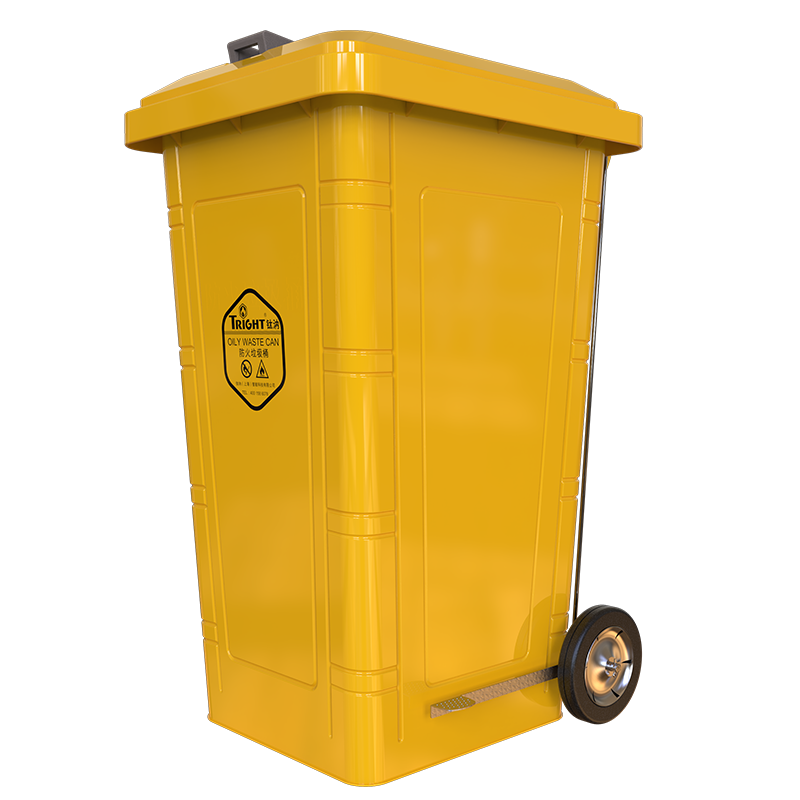 钛汭Tright油污废品桶由镀锌钢板制作而成,主要用于工厂车间、实验室收集油污抹布、油渍吸油棉、易燃液体浸泡的擦拭布、化学品试剂瓶等废弃物。使用者无需弯腰,轻踩脚踏即可开启桶盖,自闭式桶盖设计隔绝空气,防止废弃物自燃,预防火灾风险。